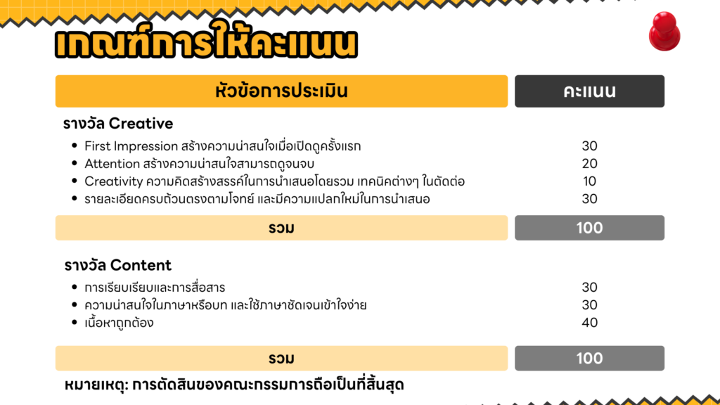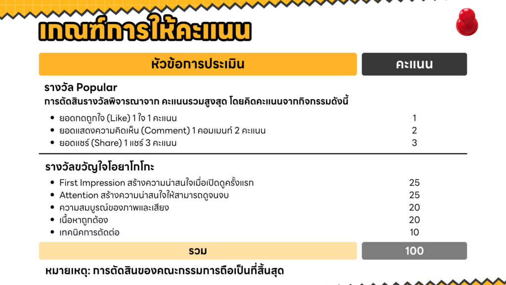 • เผยแพร่วิดีโอลง Facebook ภายในวันและเวลาที่กำหนดของการประกวด